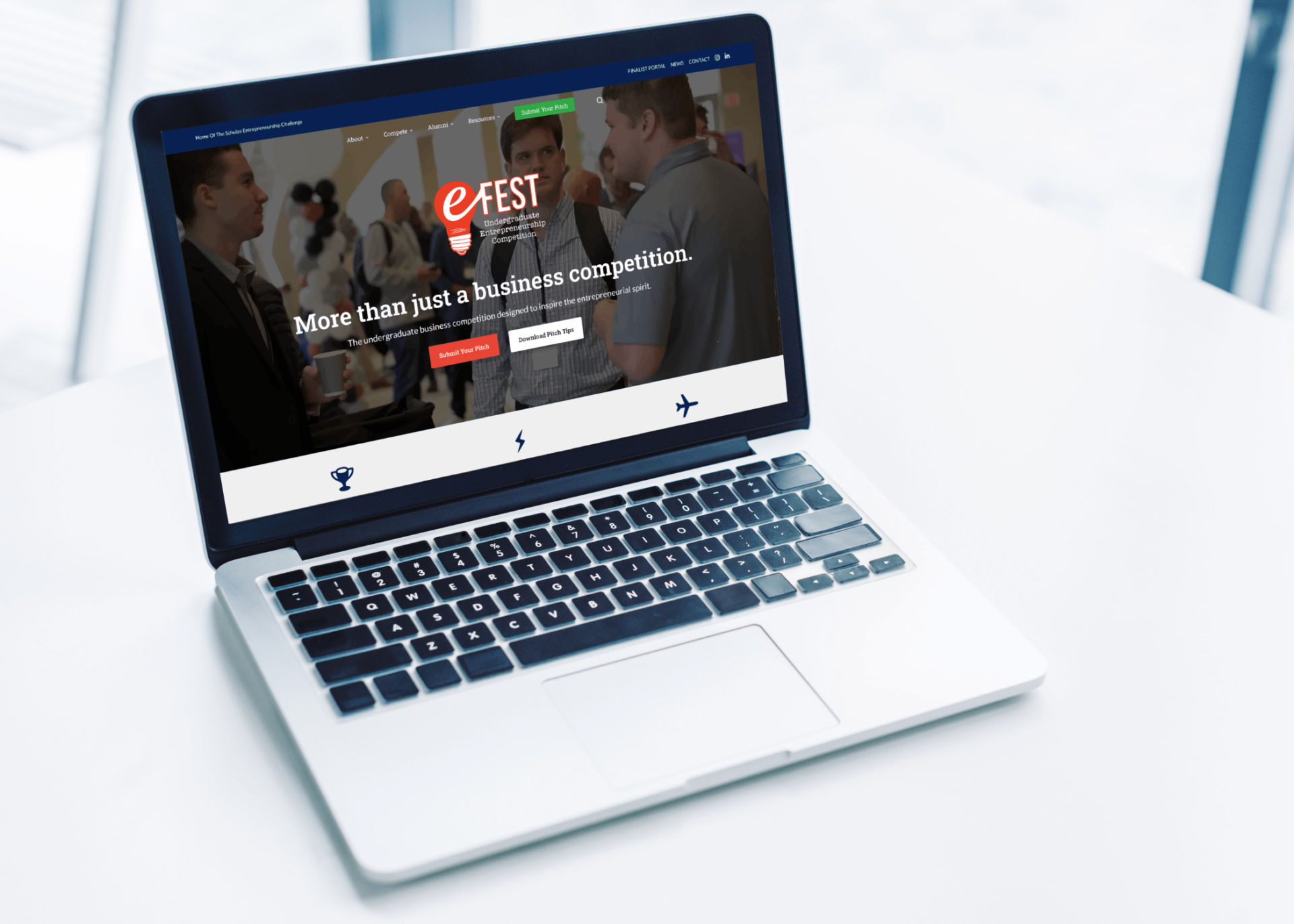 e-Fest is a business competition for young entrepreneurs designed to inspire the entrepreneurial spirit. The organization had a previous WordPress website and logo but wanted to refresh the brand identity and make the website clear and scalable. The project included a new logo, messaging foundations and full website development in WordPress. Integrated MailChimp to deliver the Lead Generator PDF.